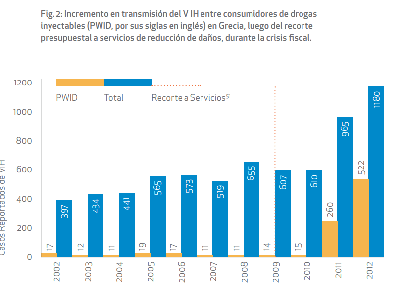 El caso de Colombia no es aislado. En Grecia los programas para usuarios de drogas fueron eliminados durante la crisis financiera, lo que ocasionó casi de inmediato un brote de VIH, que a su vez representaría unos costos en salud muchísimo más altos de lo que hubiera costado mantener en pie la reducción de daños.