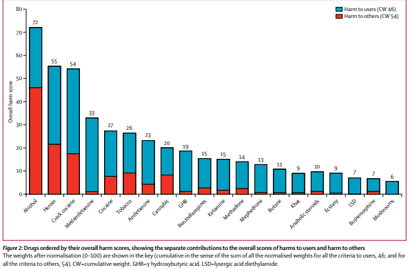 En el 2010, un artículo publicado en el diario médico The Lancet, evaluó los impactos que las drogas —legales e ilegales— tenían en la personas que las consumían y en el contexto en el cuales estas vivían.