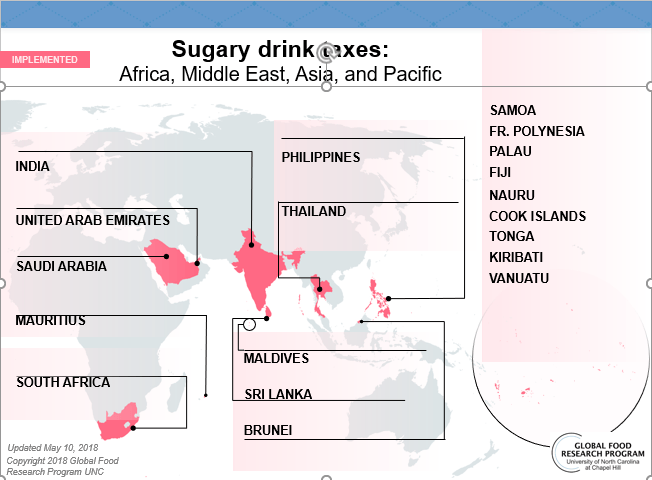 Más que una tendencia, el creciente número de países que aplican impuestos a las bebidas azucaradas es una señal de que cada vez más países ven esta medida fiscal como una política rentable para abordar la epidemia de obesidad dentro de su población.![]()