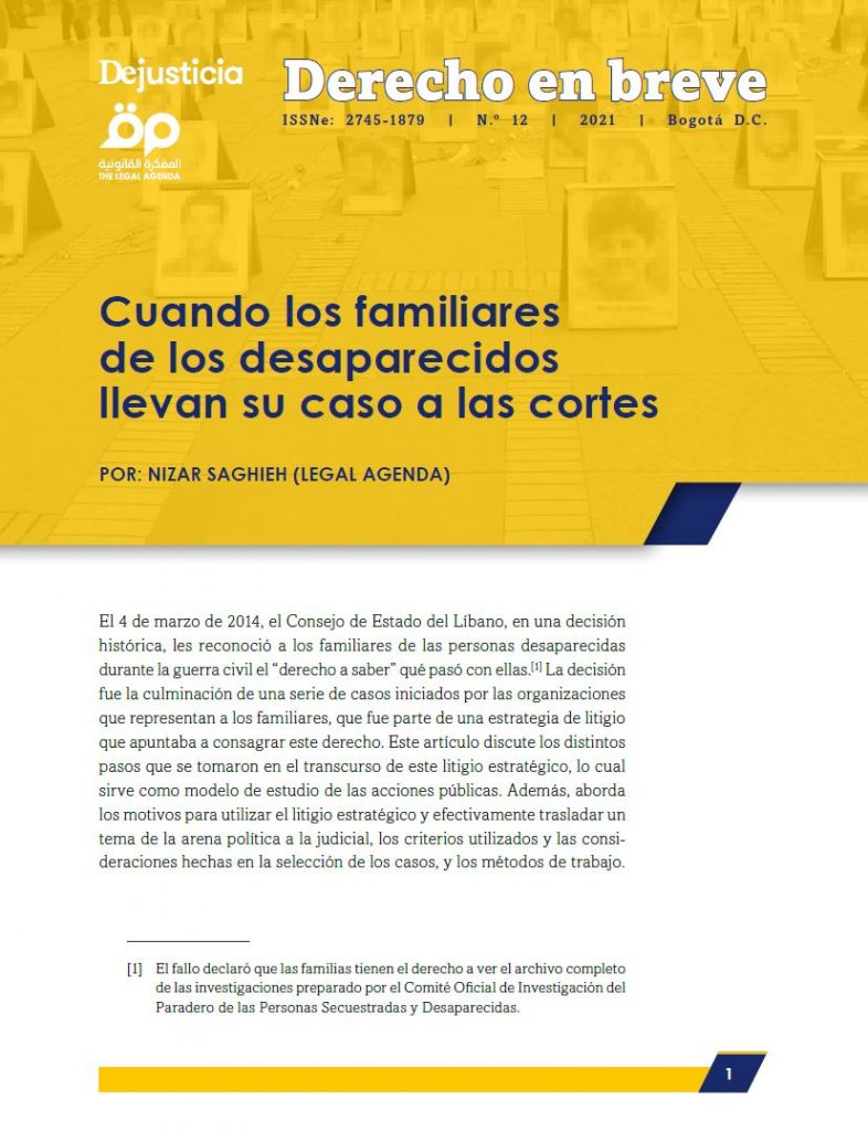 El 4 de marzo de 2014 el Consejo de Estado del Líbano tomó una decisión histórica al reconocerle a los familiares de las personas desaparecidas durante la guerra civil el "derecho a saber" qué pasó con ellas.