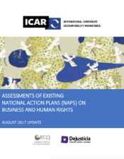 The International Corporate Accountability Roundtable (ICAR), the European Coalition for Corporate Justice (ECCJ), and the Center for the Study of Law, Justice, and Society (Dejusticia) are pleased to release an updated report on Assessments of Existing National Action Plans (NAPs) on Business and Human Rights (August 2017).