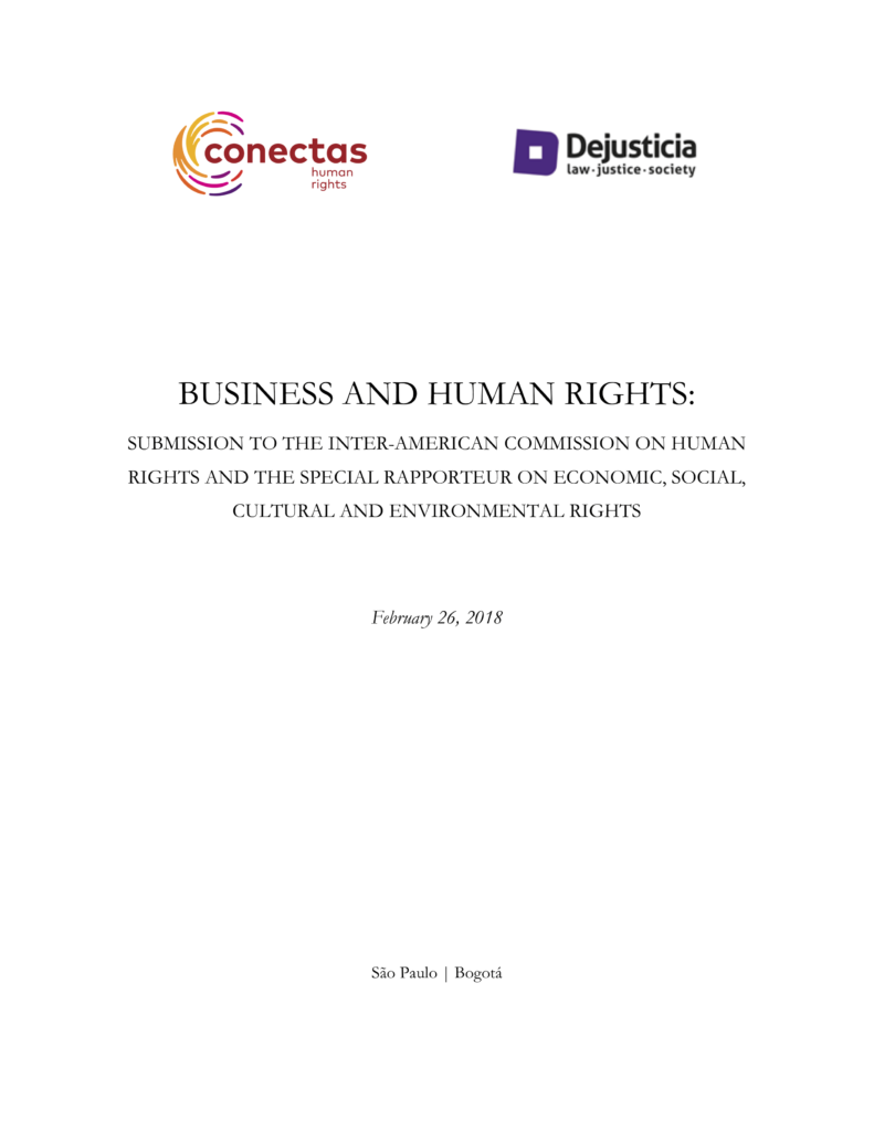Dejusticia and Conectas Human Rights (Brasil) presented this report to complement their oral presentation in an audience called by the Inter-American Commission on Human Rights, “Business and Human Rights: Inputs for the Construction of Inter-American Guidelines.”