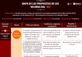 This table, elaborated by Dejusticia and the Colombian Commission of Jurists, compiles the main proposals of the political leaders of the NO.