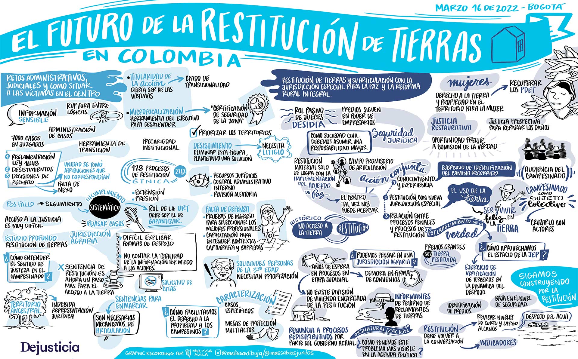 En el libro “¿Barreras insuperables? Un análisis de la etapa administrativa del proceso de restitución de tierras”, se explica cómo la estrategia de implementación de restitución se ha caracterizado por la falta de transparencia en asuntos claves para entender el funcionamiento de la política, la ausencia en la recolección y el análisis de información que permita mejorar la respuesta institucional y una reglamentación que restringe el acceso de los usuarios al sistema. Prueba de esto, es que sólo el 20,1% de las peticiones (26.940 de 130.606 reclamaciones de restitución presentadas) ha progresado a la etapa judicial transicional, es decir, ante los jueces y magistrados de la especialidad de restitución de tierras. Del 80% de peticiones restantes, solamente 89 reclamaciones han sido revisadas por una autoridad judicial, de manera desarticulada con la justicia transicional.