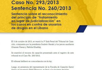 Read MoreSentencia sobre el reconocimiento del principio de «tratamiento en lugar de judicialización» en los casos en contra de usuarios de drogas en el Líbano.