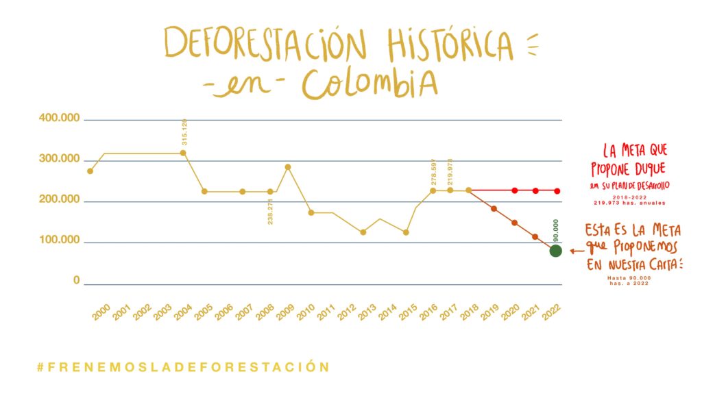 Nos preocupa que el actual presidente de Colombia no esté considerando el hecho de sostener ese compromiso, ni proponga una nueva tasa de reducción de la deforestación, sino que su apuesta sea por mantener las alarmantes tasas que existen en este momento.